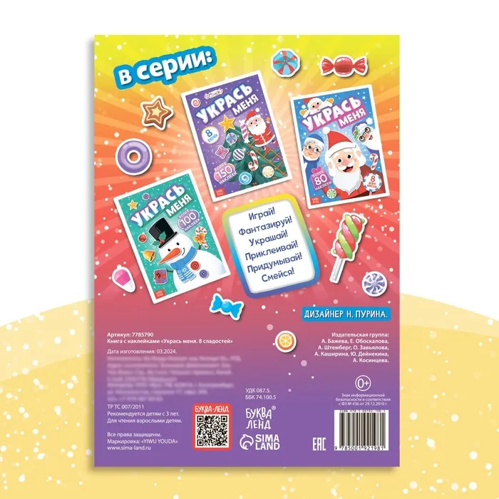Книжка с наклейками «Укрась меня. 8 сладостей», 12 стр., более 120 стикеров — Характеристики