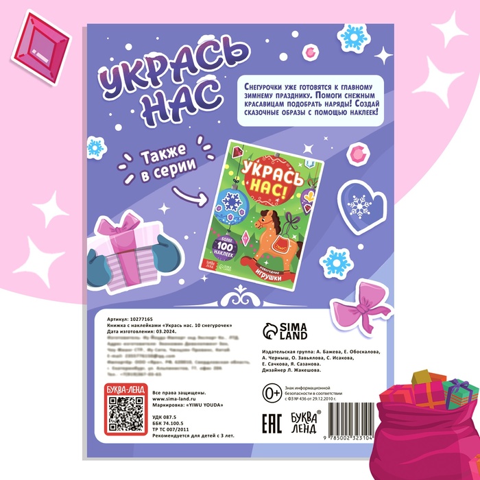 Книжка с наклейками «Укрась нас. 10 снегурочек», 64 наклейки, 3+ — Характеристики