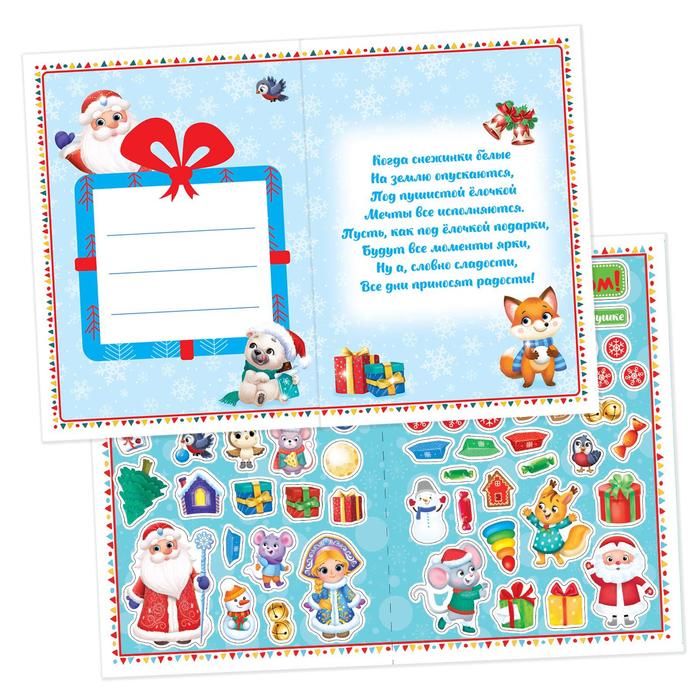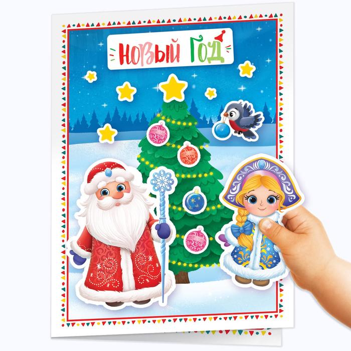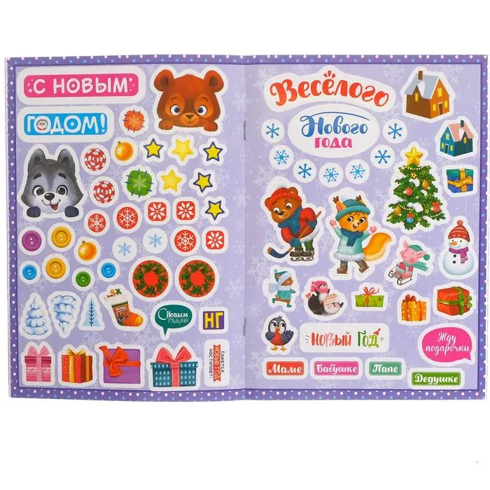 Книжка с наклейками поможет скоротать время в ожидании праздника и смастерить оригинальные открытки для близких.