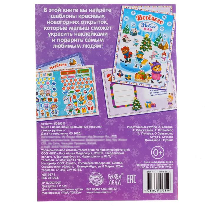 Книжка с наклейками «Волшебные открытки своими руками», 20 стр., формат А5 — Характеристики