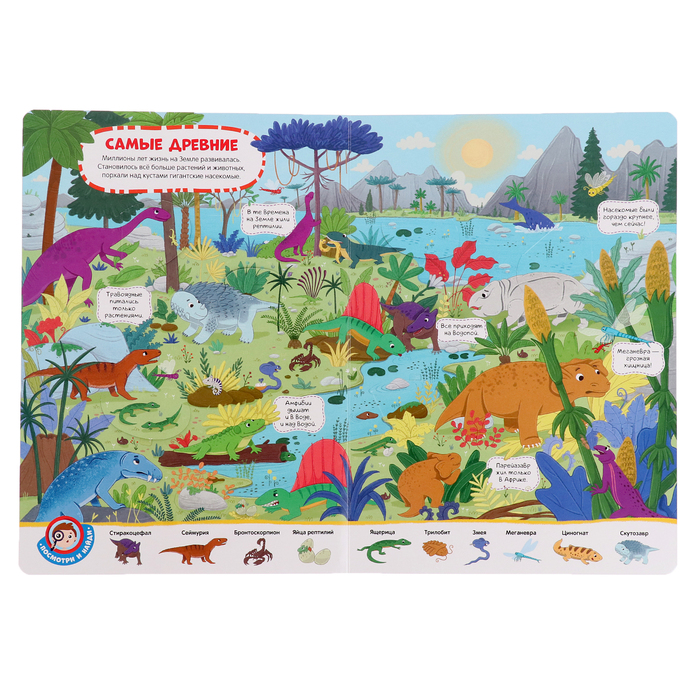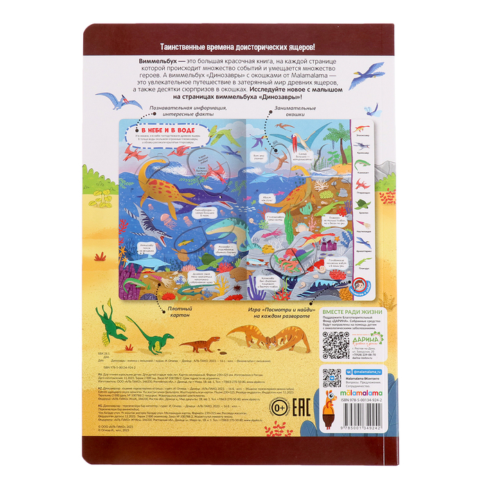 Книжка с окошками «Виммельбух. Динозавры» — Характеристики