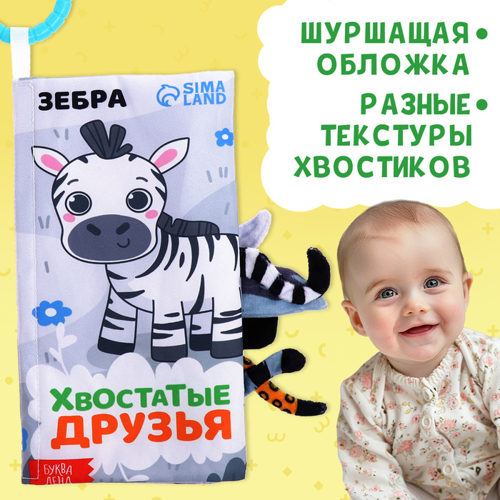 Книжка - шуршалка «Хвостатые друзья», с креплением, 22.5×17 см, от 3 месяцев — Характеристики