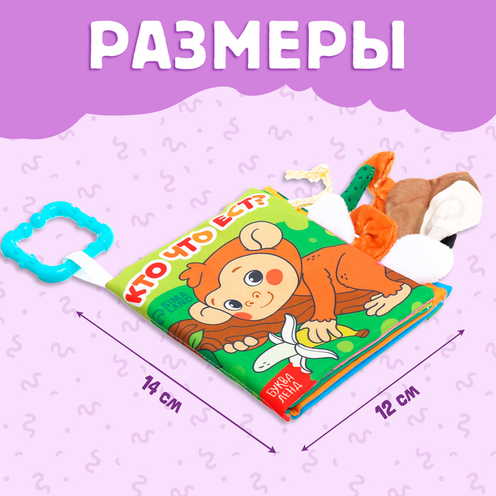 Книжка - шуршалка «Кто что ест?», с хвостиками, 14×12 см, от 3 месяцев — Характеристики