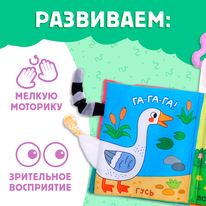 - Яркие и красочные иллюстрации нанесены на мягкий и безопасный текстильный материал.