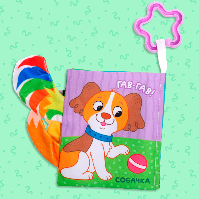 В книжке нарисованы разные животные, на каждой страничке написано, какие звуки они издают. У животных есть хвостики, которые торчат наружу. Малышу будет интересно их трогать и угадывать, кому они принадлежат.