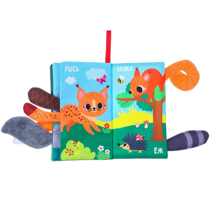 - В книжке есть хвостики разных зверят, живущих в лесу. Малышу будет интересно их трогать и угадывать, кому они принадлежат.