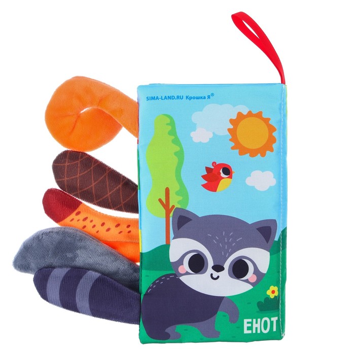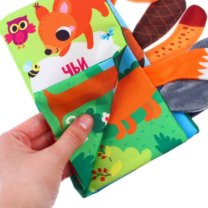 - Книжка выполнена из мягкого текстиля с шуршащими элементами для тактильного и звукового развлечения.