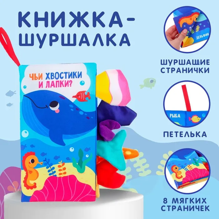 Текстильная книжка-шуршалка «Морские животные. Чьи хвостики и лапки?» станет идеальным выбором для малышей от 3 месяцев. Компактный размер и яркие страницы помогут познакомить ребёнка с животными, развивая внимание и слуховое восприятие.
