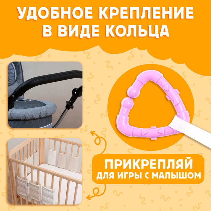- Пластиковое крепление позволяет прицепить книжку-шуршалку к коляске или кроватке.