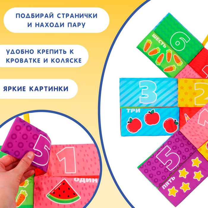 Текстильная книжка-шуршалка «Подбери цифру» станет идеальным выбором для малышей от 3 месяцев. Компактный размер и яркие страницы помогут познакомить ребёнка с цифрами, развивая внимание и слуховое восприятие.
