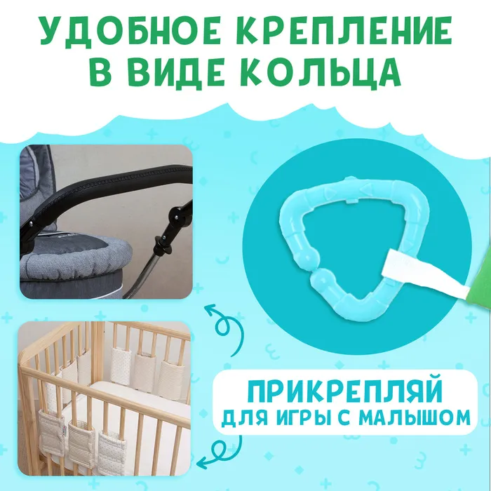 - Пластиковое крепление позволяет прицепить книжку-шуршалку к коляске или кроватке.