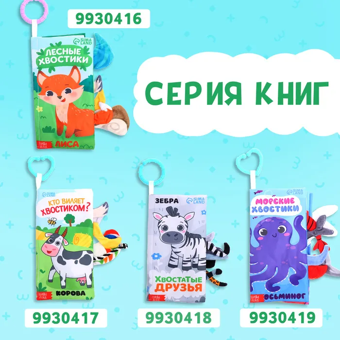 Книжка - шуршалка «Угадай хвостик», с креплением, 22.5×17 см, от 3 месяцев — Характеристики