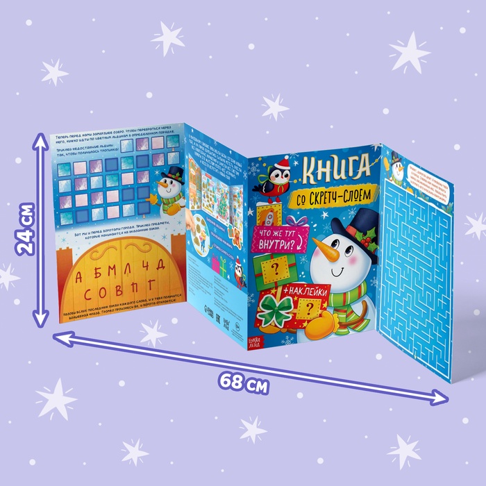 Книжка со кретч-слоем — это развивающая и интерактивная книжка-раскладушка для детей, которая погружает их в атмосферу зимних приключений. С помощью наклеек и скретч-слоя ребёнок будет выполнять задания, развивая логическое мышление и мелкую моторику.