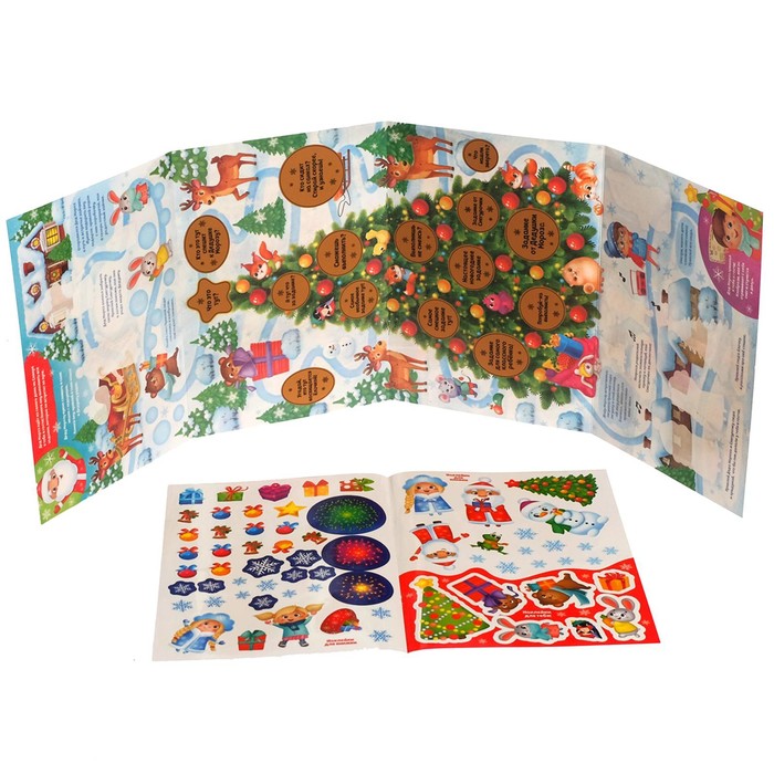 - Раскладывается в двусторонний плакат. На каждой стороне есть увлекательные задания: их нужно выполнять с помощью многоразовых наклеек и искать ответы под скретч-слоем.