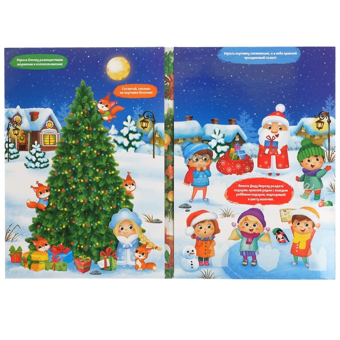 Книжка со скретч-слоем и многоразовыми наклейками «Новогодние задания» — Характеристики
