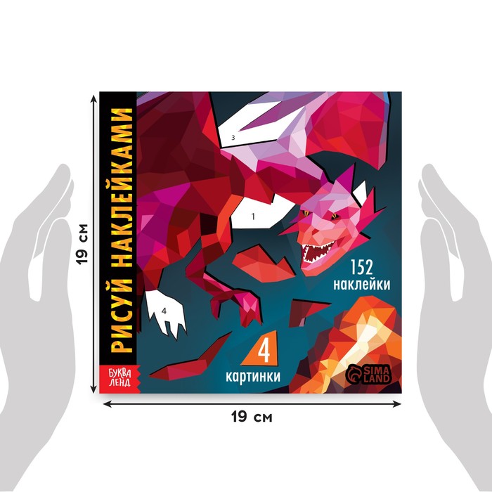 Книжка творческая «Рисуй наклейками. Дракон», 12 стр., 4 картинки, 152 наклейки — Характеристики