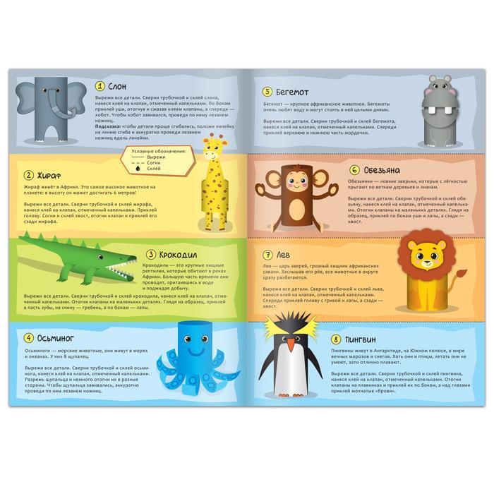 Книжка-вырезалка «Бумажные зверята. Зоопарк», 20 стр., формат А4, 8 поделок — Характеристики