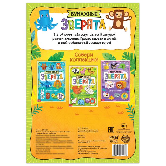 Книжка-вырезалка «Бумажные зверята. Зоопарк» — это увлекательное творческое занятие для детей от 4 лет. Создавайте милых животных из цветной бумаги! Идеально для детского творчества и развития!