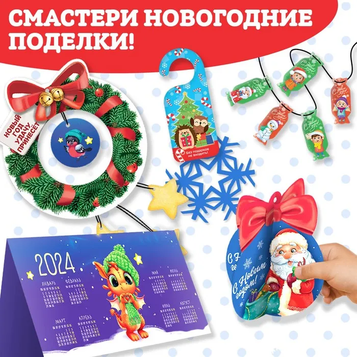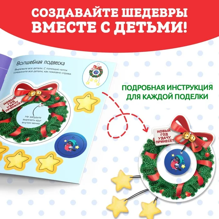 - С набором можно создать 6 новогодних украшений.