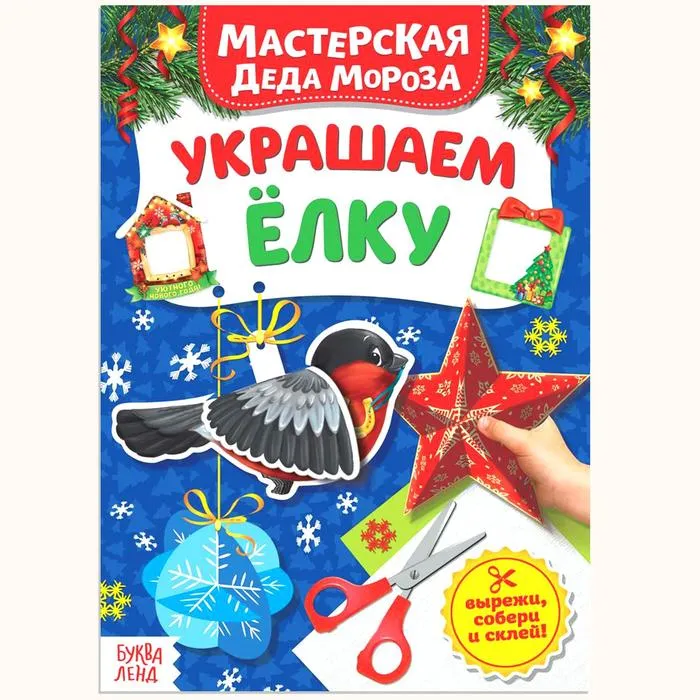 Книжка-вырезалка «Мастерская Деда Мороза: Украшаем ёлку» поможет смастерить новогодние поделки и подготовиться к волшебному зимнему празднику! Ребёнок с вашей помощью сделает снежинки, звёздочки и другие ёлочные игрушки и украсит ими лесную красавицу.