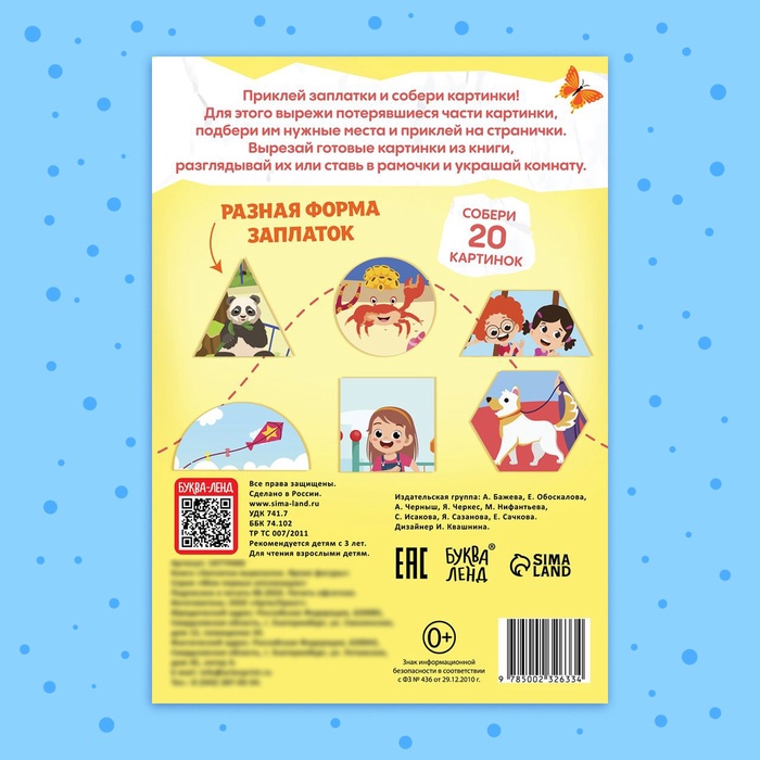 Книжка «Заплатки - вырезалки. Яркие фигуры», 44 стр., 20 картинок — Характеристики