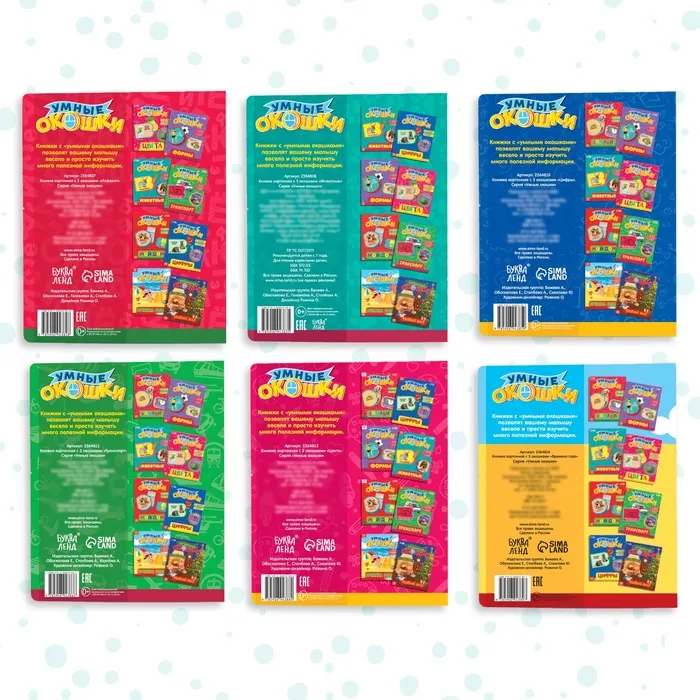 Книжки картонные с 3 окошками набор 6 шт. по 10 стр. — Характеристики
