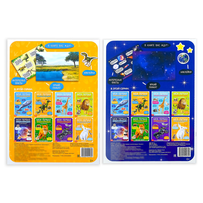 Книжки с наклейками «Энциклопедии о динозаврах и космосе», набор 2 шт. по 8 стр., А4 — Характеристики