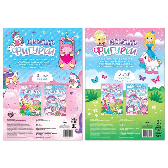 Набор книжек-вырезалок «Бумажные фигурки для девочек» — это два издания, которые погружают малышку в мир принцесс и единорогов. Собирая яркие поделки из бумаги, ребёнок развивает мелкую моторику, внимание и фантазию. Подходит для детей от 4 лет, этот набор станет идеальным подарком для маленьких любительниц сказок и волшебства.