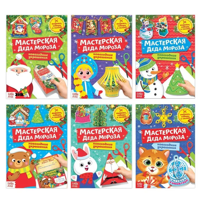 Книжки - вырезалки «Мастерская Деда Мороза», набор 6 шт. по 20 стр. — Характеристики