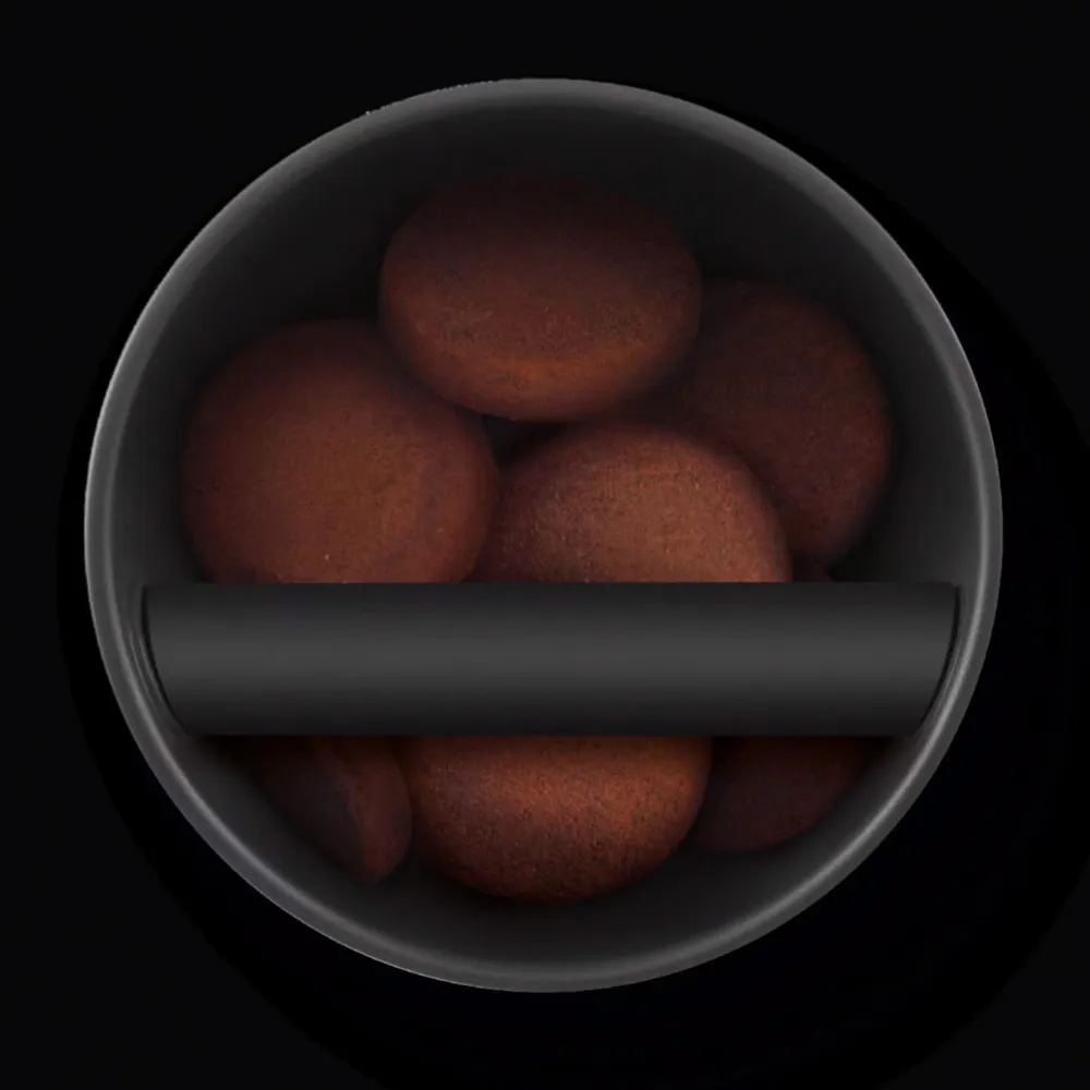 Ударьте фильтродержателем о перекладину, чтобы быстро и без лишней грязи избавиться от кофейной гущи. Прочная съемная перекладина обеспечивает легкую очистку, а нескользящее резиновое покрытие на дне контейнера добавляет стабильности.