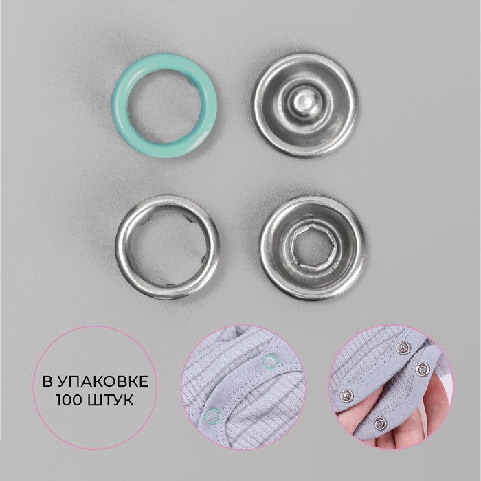 Кнопка рубашечная, открытая, d=9.5 мм, цвет мятный