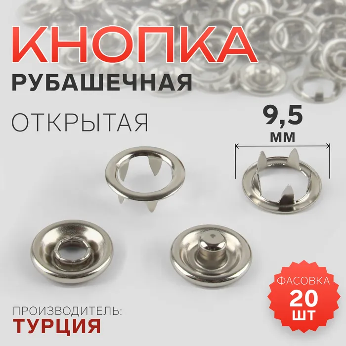 Открытые рубашечные кнопки диаметром 9,5 мм изготовлены в Турции. Они прекрасно подойдут для изделий из тонких тканей, таких как трикотаж и текстиль. Вы можете использовать их в качестве фурнитуры для детских и взрослых платьев, пижам, футболок, рубашек и другой одежды.