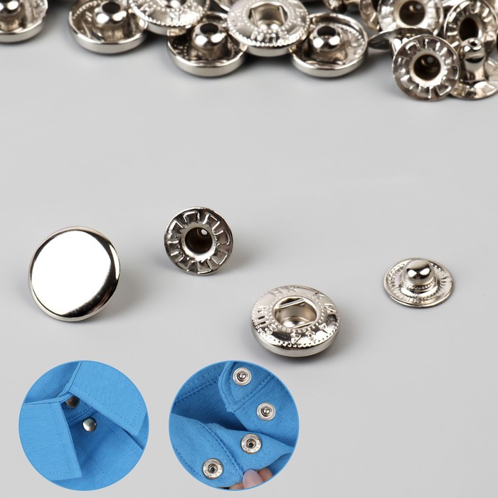 Застёжки прочные и износостойкие, устанавливаются при помощи пресса, крепление незаметно на одежде.