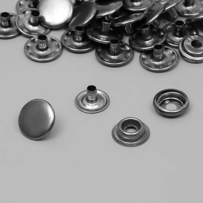 Кнопки прочные и износостойкие, устанавливаются при помощи пресса, их крепление незаметно на одежде.