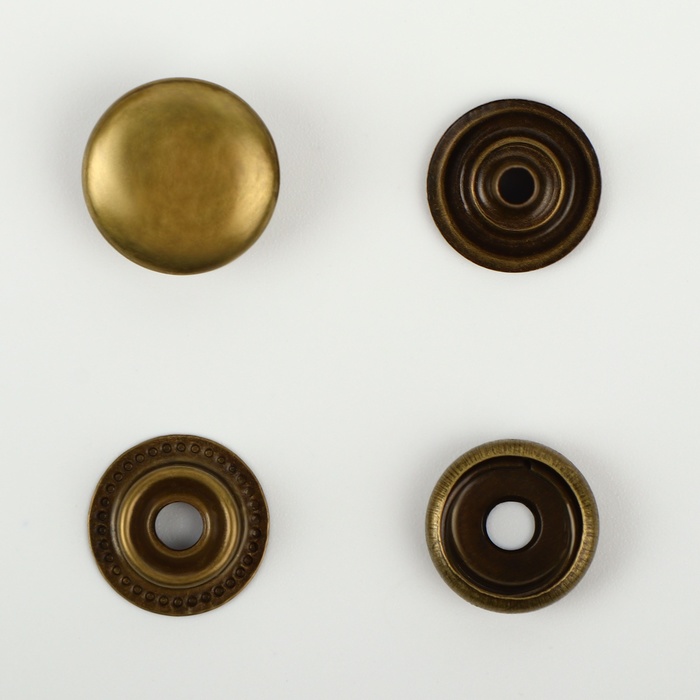Кнопки прочные и износостойкие, устанавливаются при помощи пресса, их крепление незаметно на одежде.