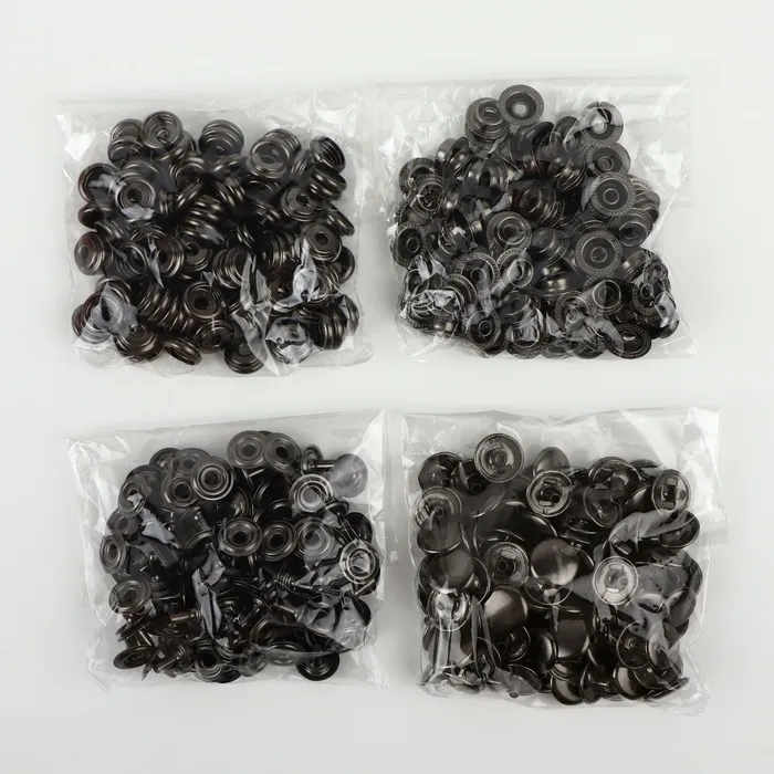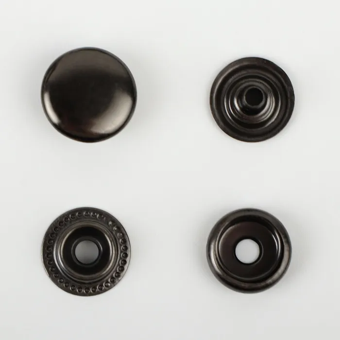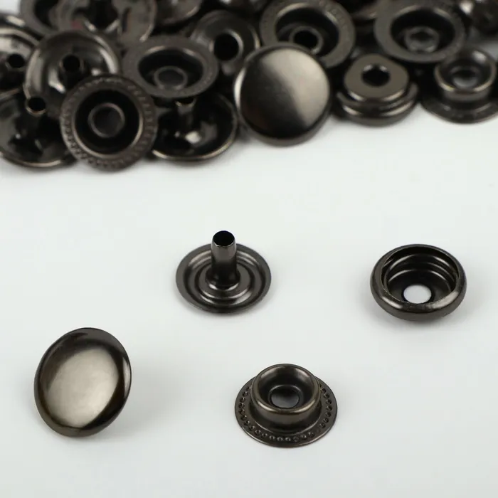 Кнопки прочные и износостойкие, устанавливаются при помощи пресса, их крепление незаметно на одежде.