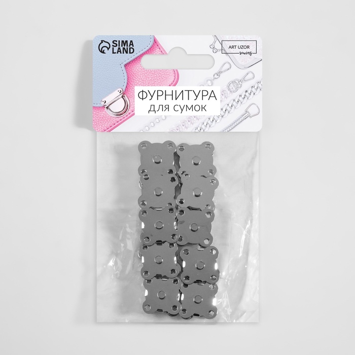 Кнопки магнитные, пришивные, d = 14 мм, 10 шт, цвет серебряный