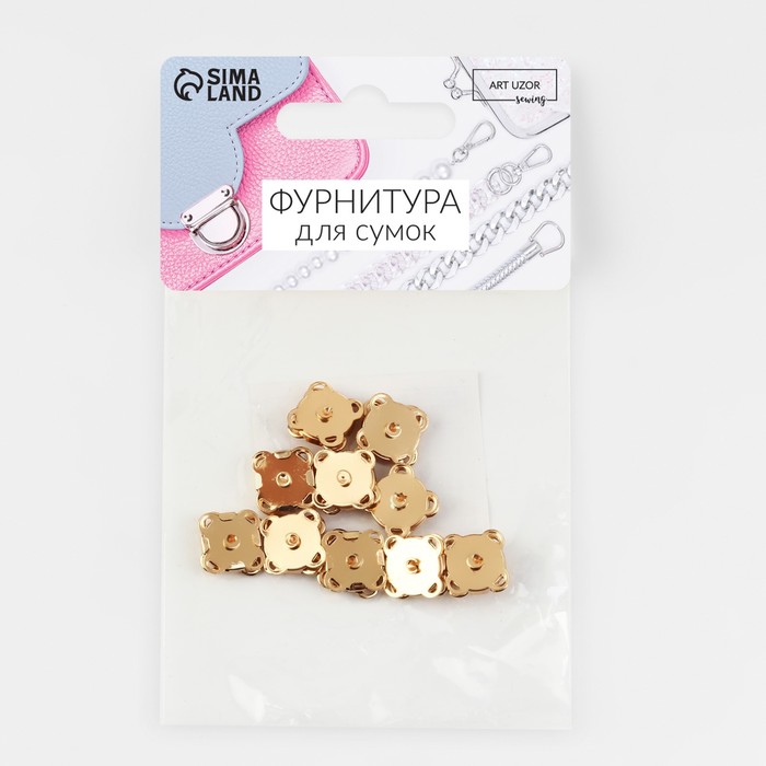 Кнопки магнитные, пришивные, d=10 мм, 10 шт., цвет золотой