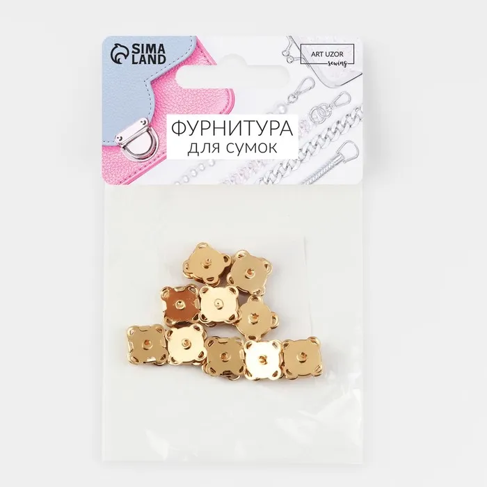 Кнопки магнитные, пришивные, d=10 мм, 10 шт., цвет золотой — Характеристики