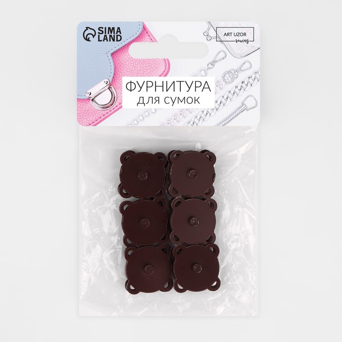 Кнопки магнитные, пришивные, матовые, d=18 мм, 6 шт., коричневые