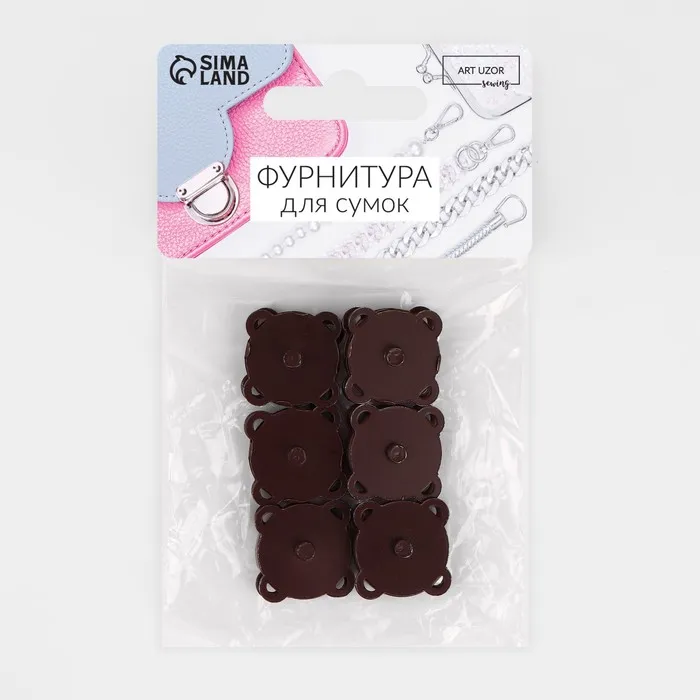 Кнопки магнитные, пришивные, матовые, d=18 мм, 6 шт., коричневые — Характеристики