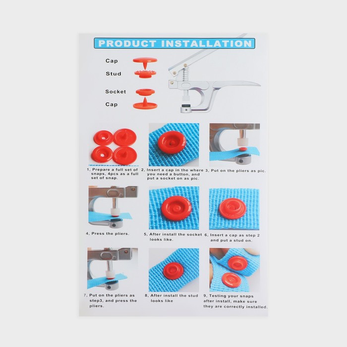 Кнопка — застёжка, которая надёжно скрепляет части изделия. Состоит из 4-ёх частей и может быть установлена с помощью пресса, установщика или щипцов.