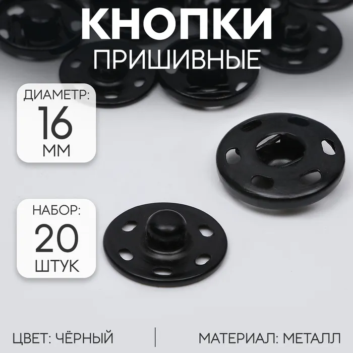 В наборе 20 штук, d = 16 мм, цвет чёрный.