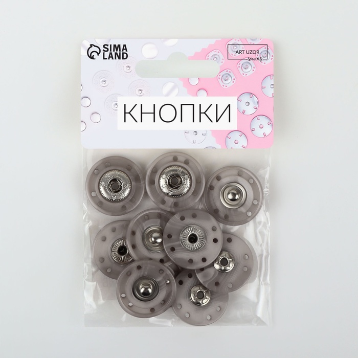 В наборе 5 кнопок, d = 23 мм, цвет серый.