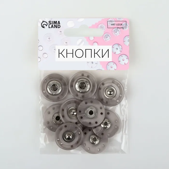 Данная модель выполнена из меди и пластика, может выступать не только в качестве застёжки, но и как элемент украшения одежды. При этом кнопки прочные и износостойкие, надёжно фиксируют края изделия. Пришиваются к одежде обычными нитками и не повреждают материал.