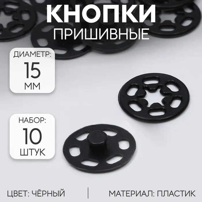 Кнопки выполнены из качественного пластика, они прочно фиксируются в закрытом виде, пришиваются к одежде обычными нитками и не повреждают материал. Кнопки прослужат вам долго и не выйдут из строя даже после машинной стирки и многократного использования.