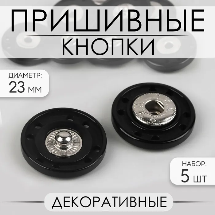 В наборе 5 кнопок, d = 23 мм, цвет чёрный.