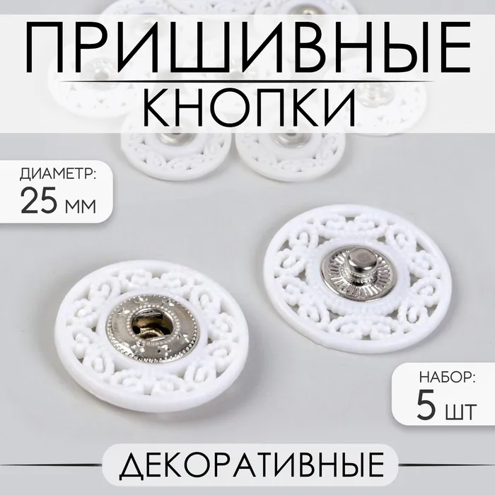 В наборе пять кнопок, d = 25 мм, цвет белый.