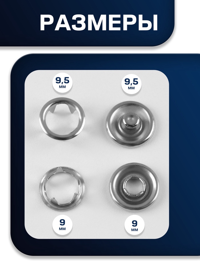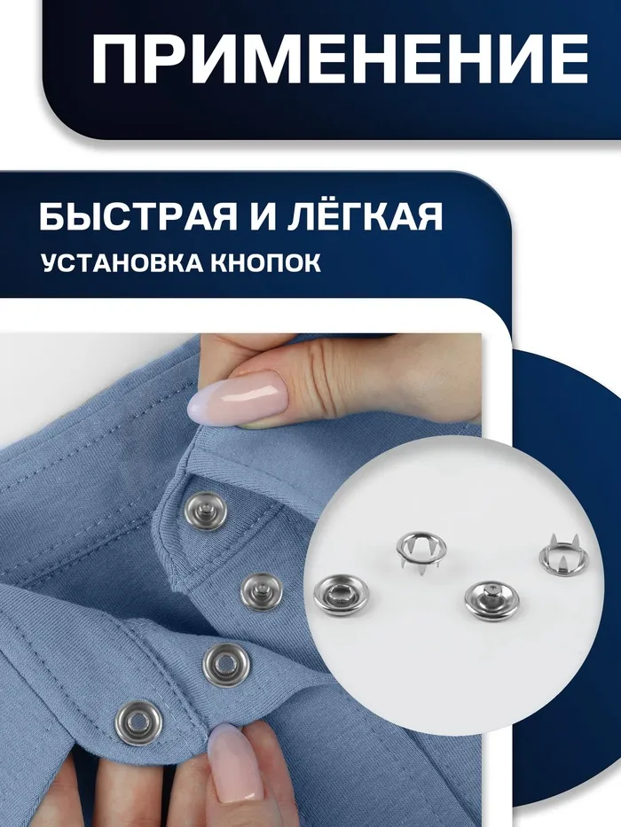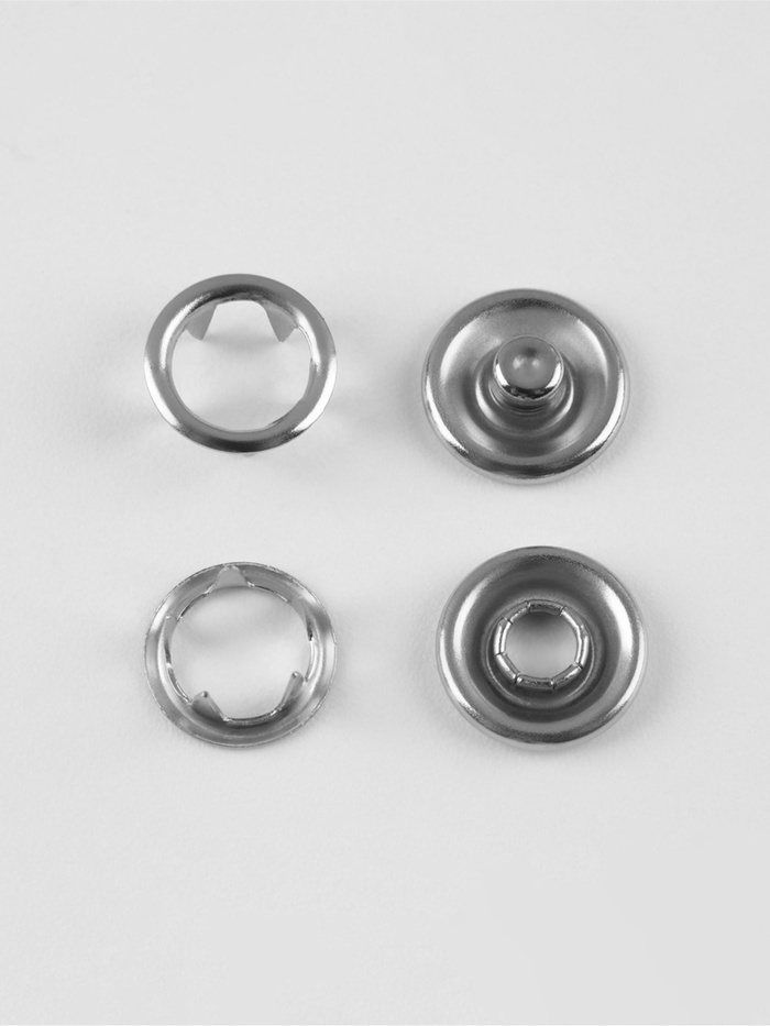 Аккуратная застежка для рубашек и легкой одежды — серебристые кнопки 9,5 мм из нержавеющей стали. Комплект из 10 штук в удобном боксе подойдет для ремонта фурнитуры или пошива новых вещей. Миниатюрный размер сохраняет незаметность, а прочный металл гарантирует долгий срок службы.
