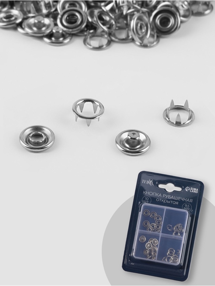 Кнопки рубашечные TEIRA, открытые, d=9.5 мм, 10 шт., в пластиковом боксе, цвет серебряный — Характеристики